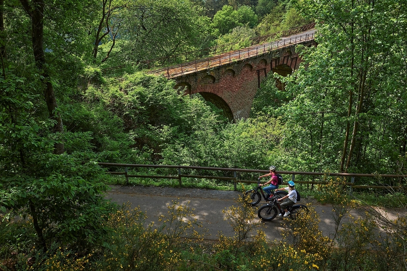 Auf der ehemaligen Bahntrasse radelt man gemütlich von der Vulkaneifel bis an die Mosel. Für Freizeitradler, Familien mit Kindern & Inlineskater in beide Richtungen zu empfehlen.